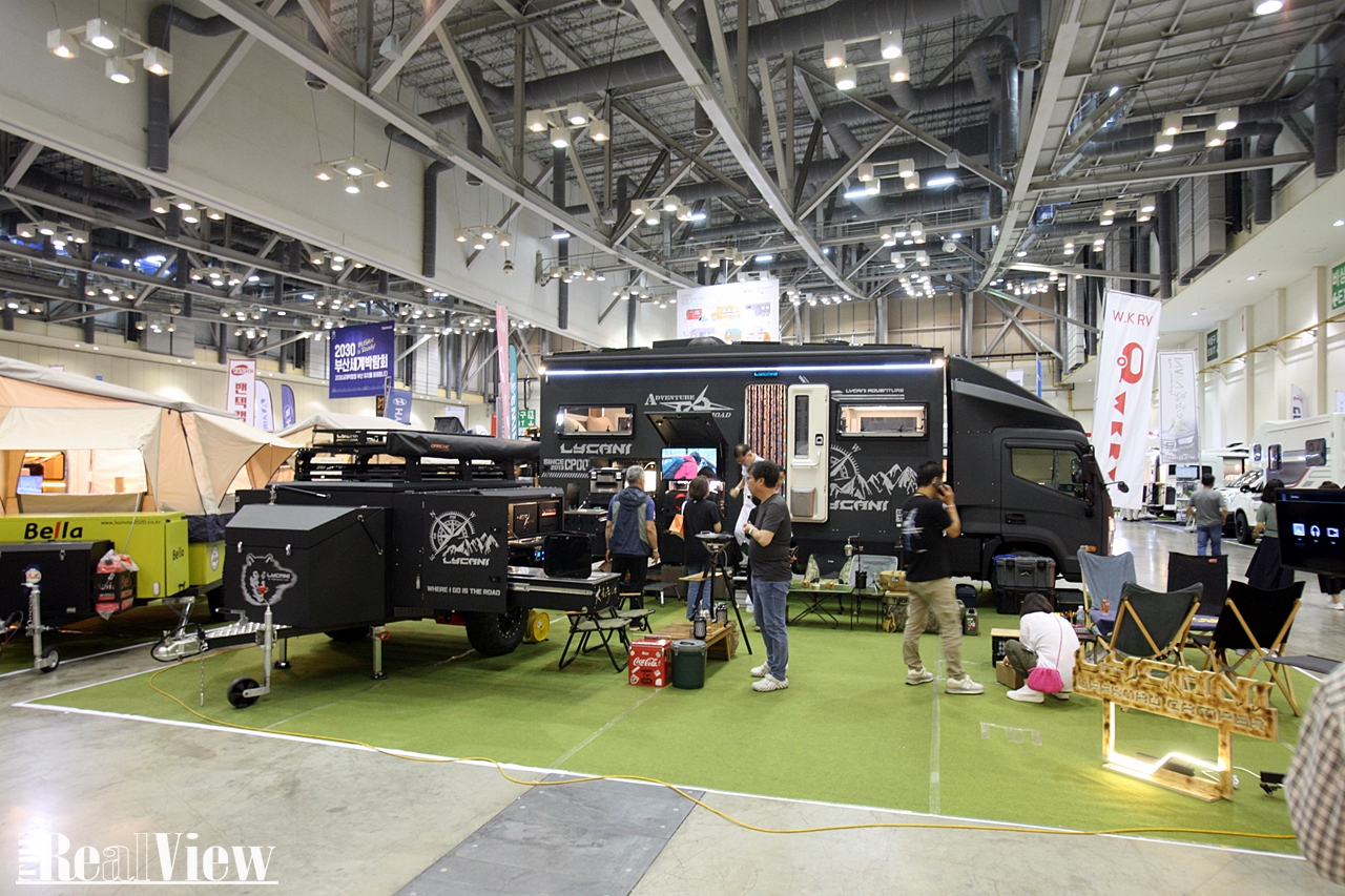 전시장 입구에는 라이카니 트레일러와 마이티로 제작된 밀리터리, 오프로드 느낌의 중형 모터홈이 관람객의 시선을 사로 잡고 있었다.